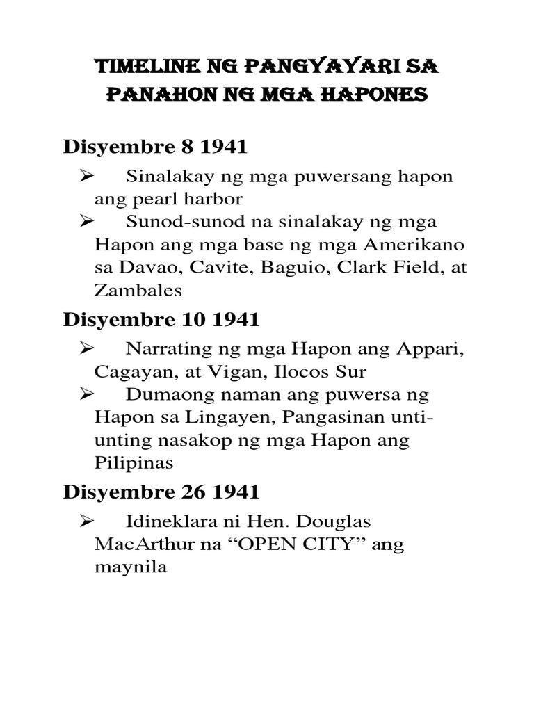 Timeline Ng Pangyayari Sa Panahon Ng Mga Hapones Pdf