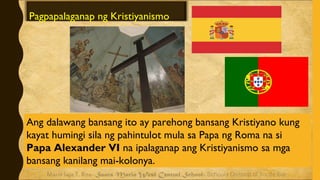TATLONG PANGUNAHING LAYUNIN NG ESPANYA SA PANANAKOP SA PILIPINAS. Ang Silangan ay para sa Portugal at ang Kanluran ay para sa Espanya. Pagpapalaganap ng Kristiyanismo Bukod sa Portugal ang Espanya ay isa.