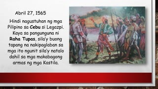 Nagtatag siya ng unang permanenteng pamayanan sa Cebu matapos talunin si Raja Tupas Abril 1565. Ang Pananakop sa Pilipinas Itinalaga ni Legazpi bilang pinuno ng pwersang Espanyol sa pagsakop ng Maynila at nakasakop ng maraming lugar sa pamumuno niya. Magbinyag ng mga Kristiyano.